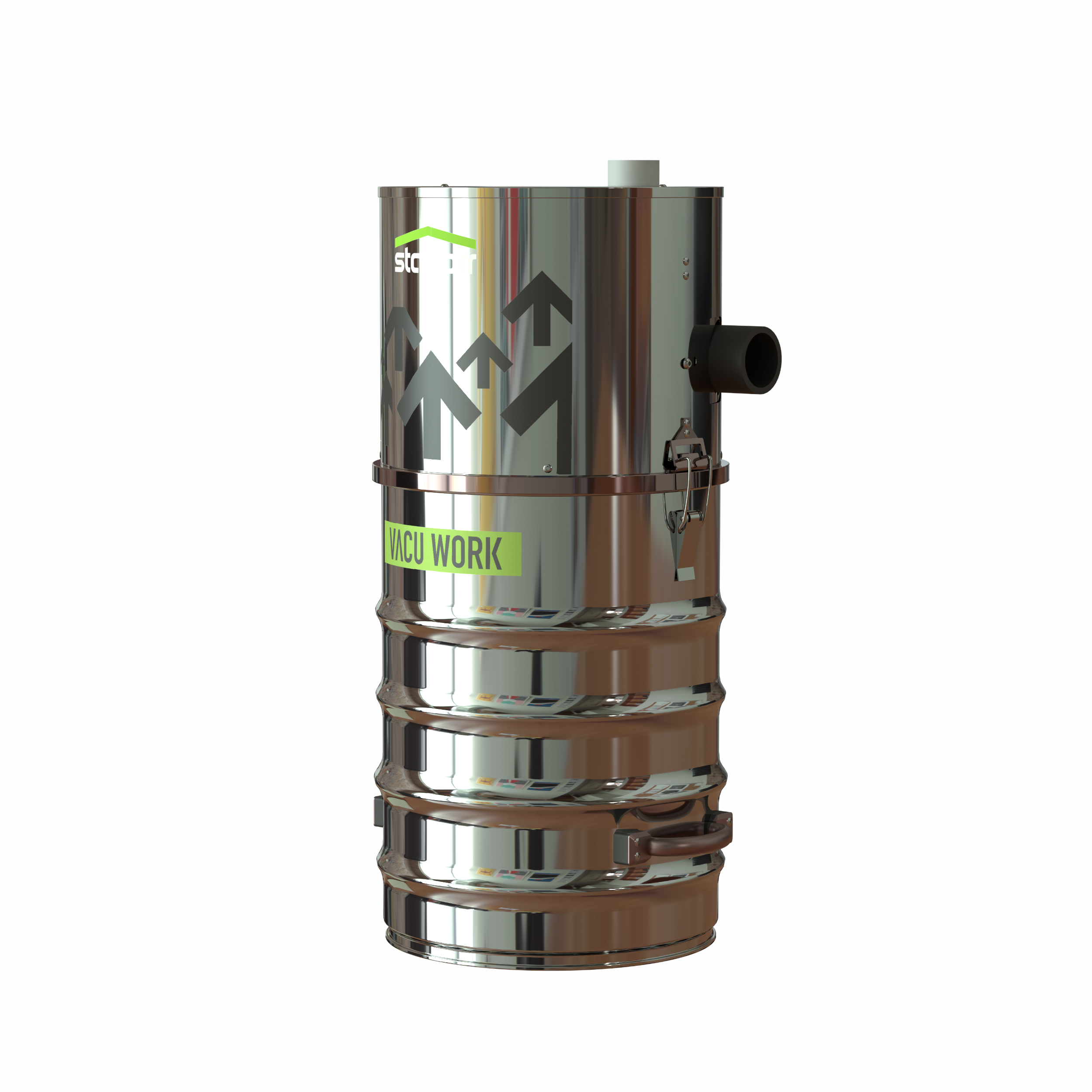 Tutte le centrali aspiranti Vacu Work Evo sono realizzate in acciaio inox, una scelta costruttiva che garantisce maggiore resistenza all’umidità e alla corrosione nel tempo. L’acciaio inossidabile contribuisce a preservare nel tempo la tenuta stagna del corpo macchina, migliorando affidabilità e durata della centrale aspirante.