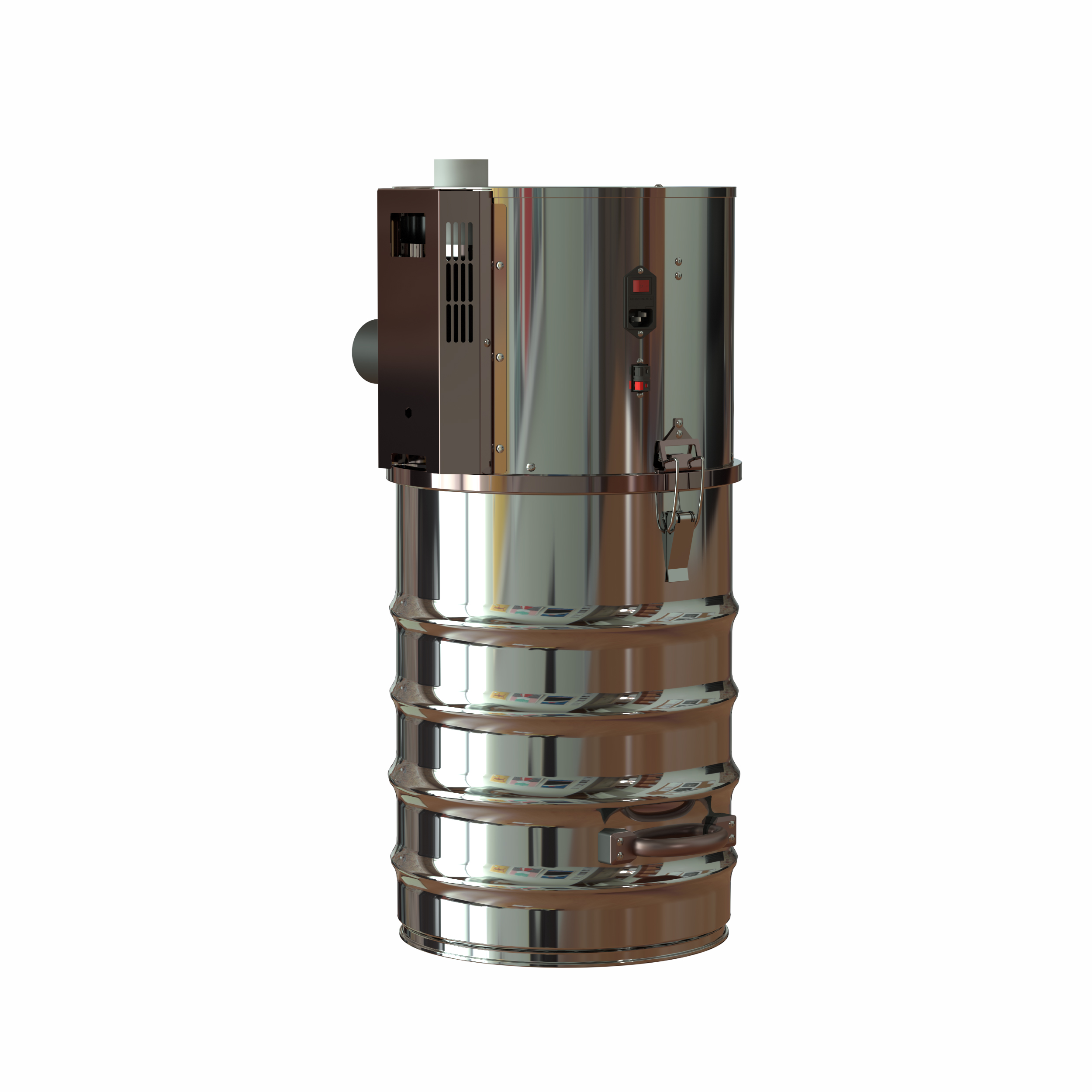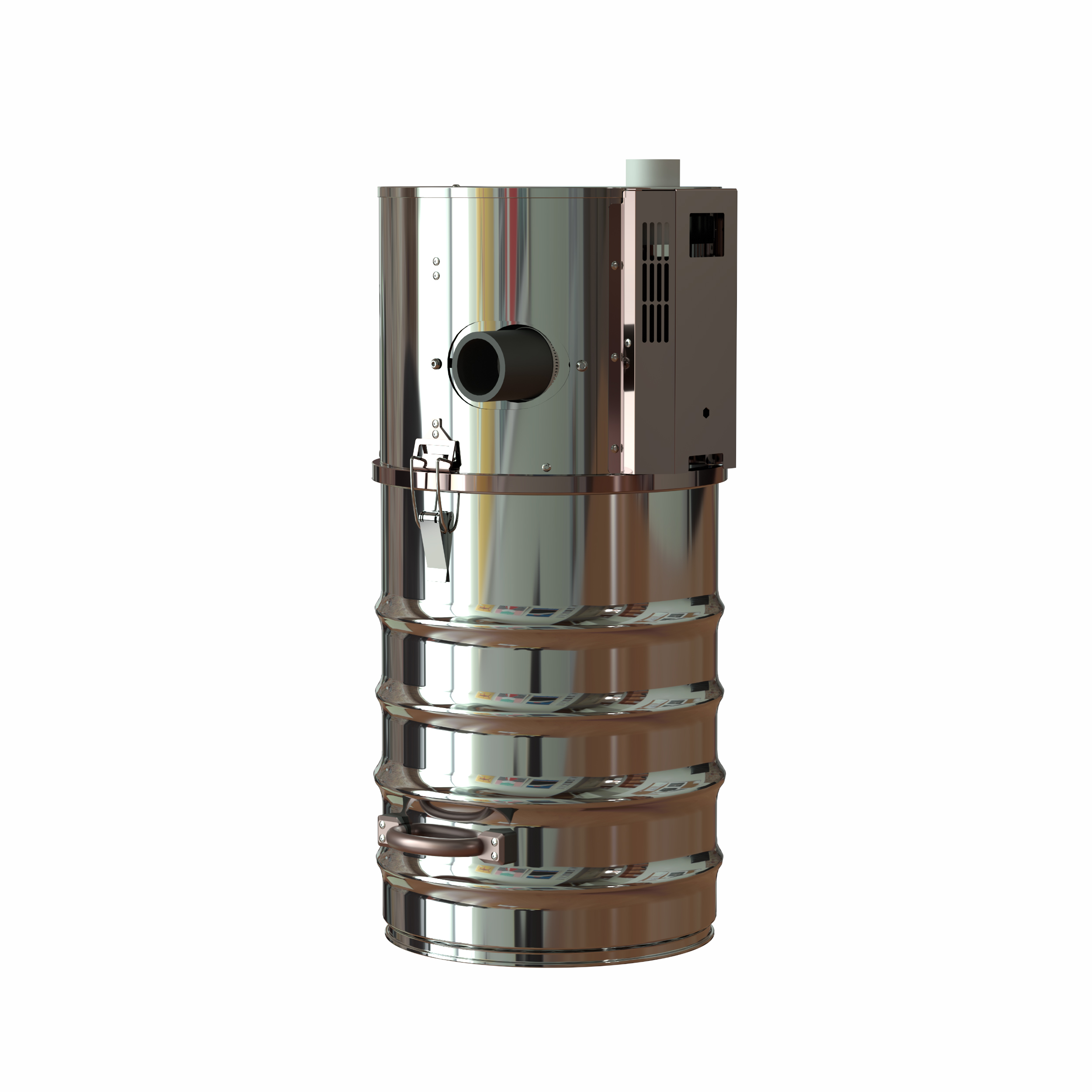Il motore by-pass tangenziale maggiorato da ø185 mm, abbinato alla chiocciola ciclonica, alla carena di protezione del filtro e alla filtrazione con cartuccia classe M, garantisce prestazioni elevate, continuità di rendimento e una separazione più efficace delle polveri prima che raggiungano il filtro. La struttura in acciaio inossidabile, insieme alle soluzioni costruttive adottate, contribuisce a migliorare robustezza, durata e affidabilità nel tempo.