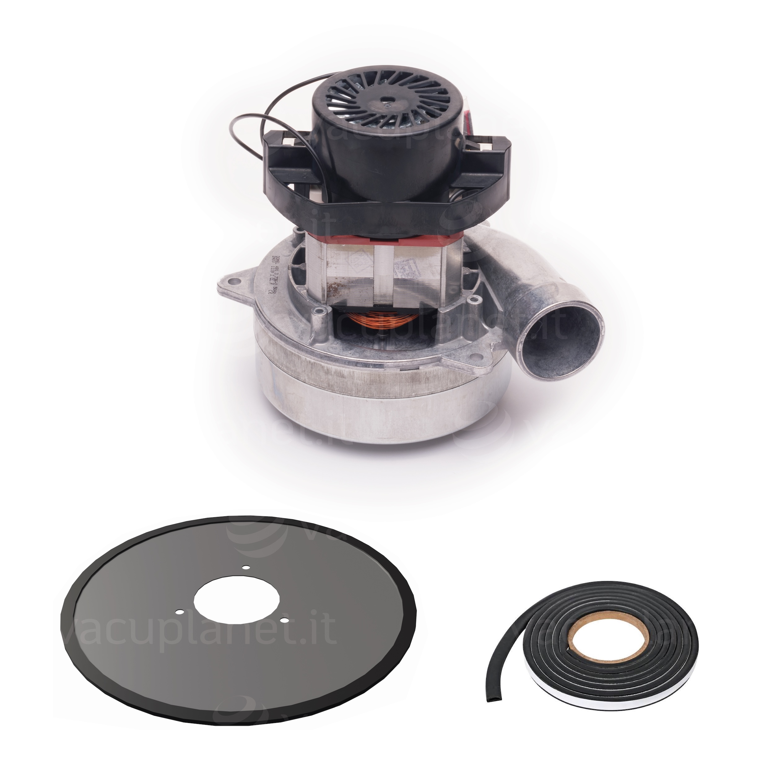 Kit motore di ricambio originale Domel, sostituisce il motore FISE codice SK212TS10000 fuori produzione originariamente installato nelle seguenti centrali aspiranti Aertecnica: S150, P150, C150, PX150.